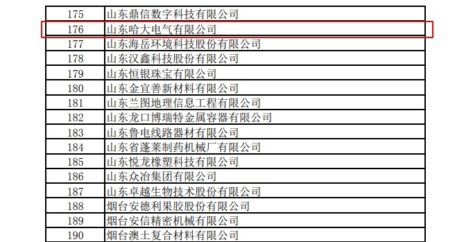 山東哈大電氣有限公司入選瞪羚企業(yè)。